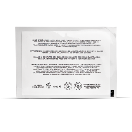 Patch occhi in idrogel ad azione drenante, defaticante e rinfrescante da applicare nella zona del contorno occhi e lasciarlo agire per almeno 15 minuti.