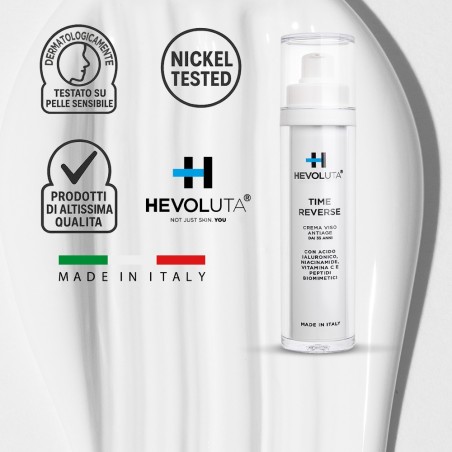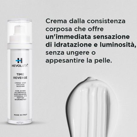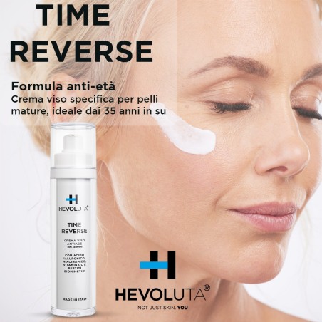 La nascita di Time Reverse deriva dall'esigenza di Hevoluta di fornire una crema viso specifica per le sue clienti in premenopausa, menopausa e post-menopausa, quando la pelle diventa particolarmente esigente e secca.
