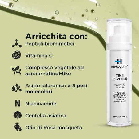 TIME REVERSE Crema Viso Antiage dai 35 Anni con Peptidi Biomimetici Vitamina C e Acido Ialuronico, 50 ml.