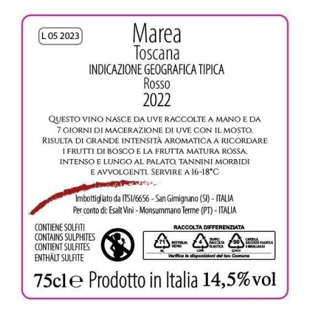 Vino rosso intenso con riflessi violacei ha sentori di frutta rossa matura , confettura e piccoli frutti di bosco . Note speziate e...