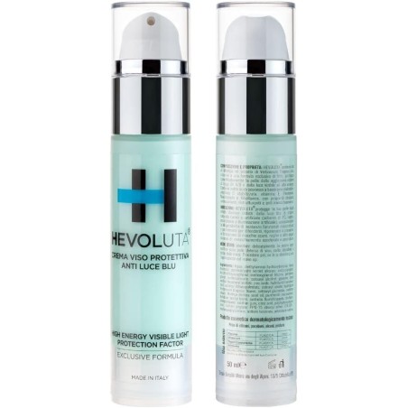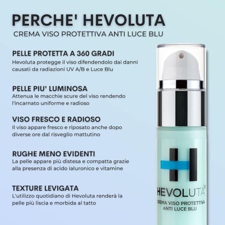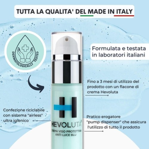HEVOLUTA CREMA VISO PROTETTIVA ANTI LUCE BLU SPF con 10 Sostanze Attive, Idratante, Antiossidant,e Anti-Invecchiamento - 50 ml.