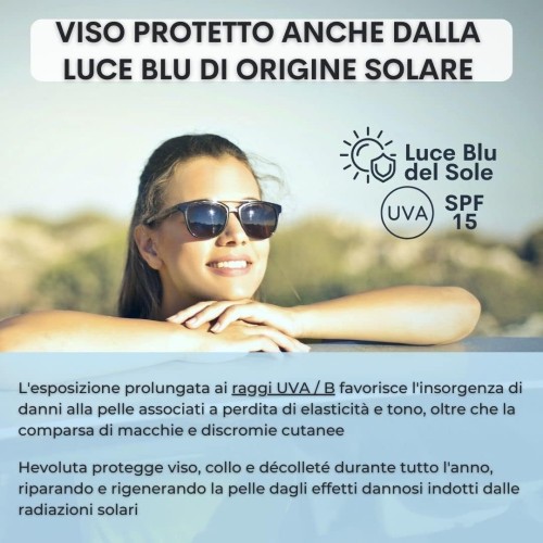 - previene i danni filtrando le radiazioni Uv e Luce Blu e ripara i danni che sono già avvenuti nella pelle a causa delle stesse radiazionI di origine naturale e artificiale (UVA/B e Luce Blu);