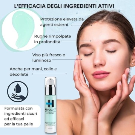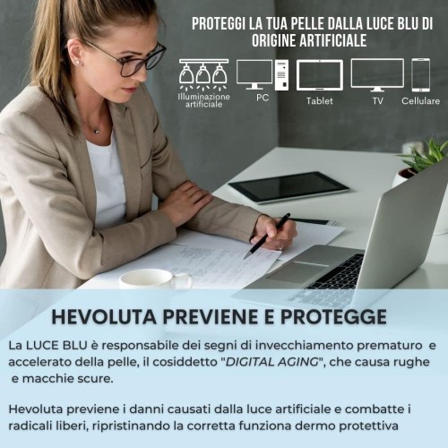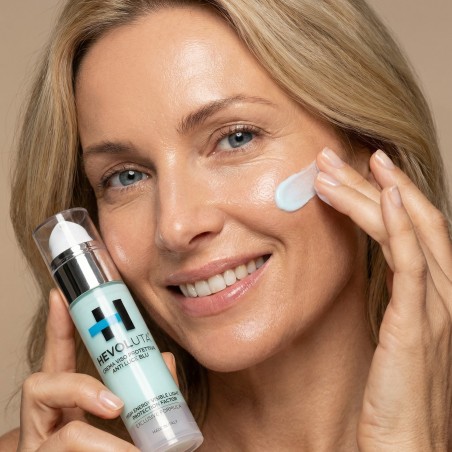 Hevoluta Crema Viso Protettiva anti Luce Blu contrasta l'invecchiamento precoce e accelerato in più modi: