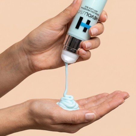 HEVOLUTA® Crema Viso Protettiva Anti Luce Blu è ottima come base trucco e non necessita di massaggio, ha una texture leggera, con skin-feel piacevole, morbido e scorrevole.