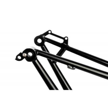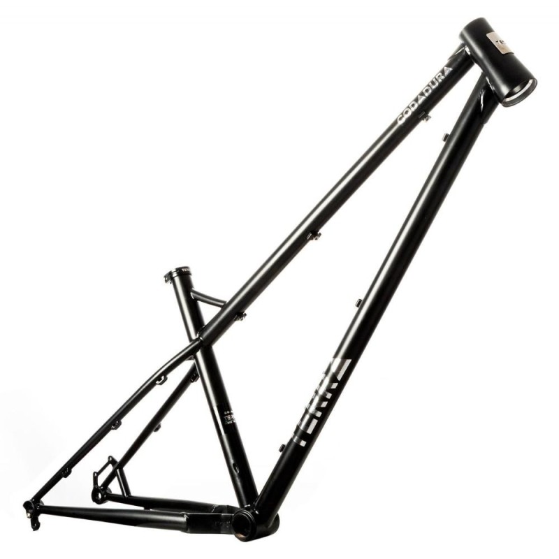 Il telaio CodaduraTrail è la nostra idea di come dovrebbe essere una bici totale. Un telaio in acciaio al cromo con una geometria super stabile e divertente unita al comfort dell'acciaio di cui hai bisogno per guidare tutto il giorno. Le ruote da 29 pollici ti permettono di rendere la bici più stabile per i lunghi viaggi e più veloce per i sentieri dietro casa. Due fori portaborraccia sul telaio ti permettono di personalizzare la tua bici e la tua attrezzatura per ogni avventura, trasmissione ad ampio raggio e forcella a elevata escursione ti assicurano di poter andare e tornare con un sorriso e una storia che vale la pena raccontare. NB : A causa della lavorazione artigianale, i telai TERRA non verniciati, possono presentare segni visibili del processo di produzione sotto al rivestimento trasparente. Ogni telaio è unico nella sua lavorazione ( vedi immagini dimostrative : IMG 1.1, IMG 1.2, IMG 1.3, IMG 2.1, IMG 2.2, IMG 2.3) . SPECIFICHE: Progettato per forcelle da 140 mm-170 mm Tubo sterzo conico ZS44 / ZS56 Supporto ISCG05 2x supporti per portaborraccia Movimento centrale filettato BSA 73mm Attacco pinza freno post mount Foderi posteriori super corti (428 mm) 148×12 perno passante Alloggiamento per pneumatici 29 x 2,6 Tubo sella compatibile con dropper 31.6 stealth routing (clamp 34,9) Tubi Cromoly DZB Peso 2,8 – 2,9 kg (in funzione della taglia) Progettato in Italia