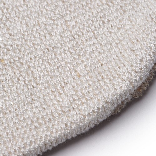 Il lato in Lino esercita una delicata azione esfoliante, rimuovendo le cellule morte e favorendo il naturale rinnovamento cellulare. Il lato in Bambù, estremamente morbido, è perfetto per la detersione finale, rendendo la pelle fresca, liscia e luminosa.