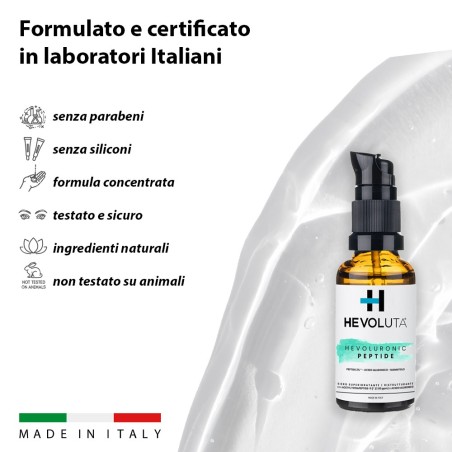 HEVOLURONIC PEPTIDE Siero Viso Collo Décolletté Idratante Anti-Età con Acido Ialuronico e Peptide - 30 ml.